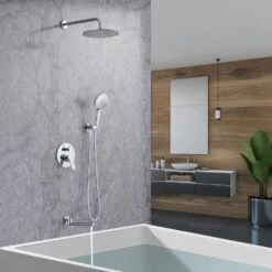 Double Handles Of Faucet 3-Spray Tub And Shower Faucet 1.8 Flow Rate GPM In Chrome (Valve Included)