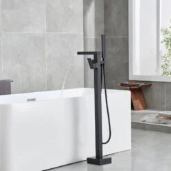 Single-Handle Free Standing Claw Foot Freestanding Tub Faucet With Handheld Shower In. Matte Black