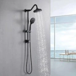 3 Spray Dual Shower Head And Handheld Shower Head Wall Mounted Shower System 2.5 GPM In Matte Black