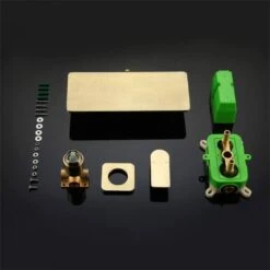 Single Handle Wall Mounted Bathroom Faucet With Deck Plate & Overflow Pop Up Drain In Brushed Gold
