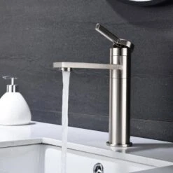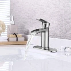 Single Handle Wall Mounted Bathroom Faucet With Deck Plate & Overflow Pop Up Drain In Brushed Nickel
