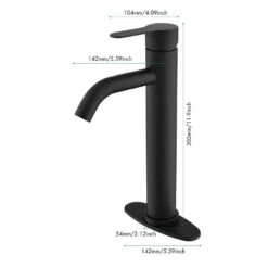 Single Handle Wall Mounted Bathroom Faucet With Deck Plate & Overflow Pop Up Drain In Matte Black