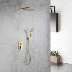 Single-Handle 2-Spray Patterns Rainfall Rectangle Dual Shower Head In Brushed Gold (Valve Included)