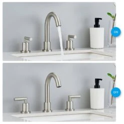 Widespread Bathroom Faucets 3 Hole 360° Swivel Spout Modern Sink Basin Faucets In Brushed Nickel