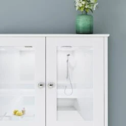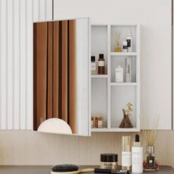 5.10in. W X 22.00 In. D X 22.80 In. H Bathroom Storage Wall Cabinet With Magnetic Lock In White
