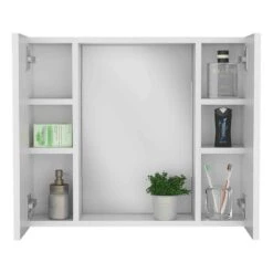 6.70 In. W X 35.00 In. D X 28.70 In. H Bathroom Storage Wall Cabinet With Mirror Towels Bar In White