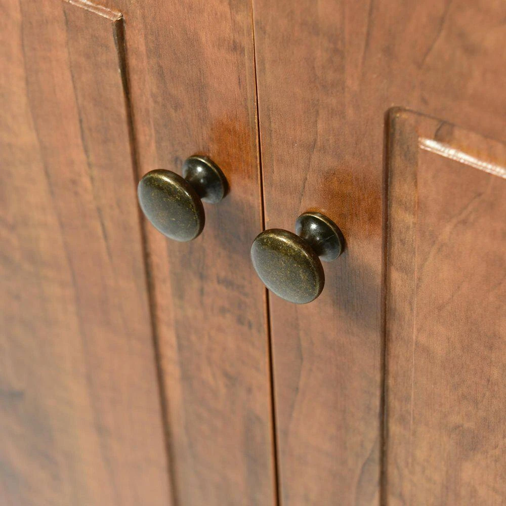 - Closed and organized storage: cabinet doors hide clutter while keeping items dry; brushed nickel knobs for easy opening/closing