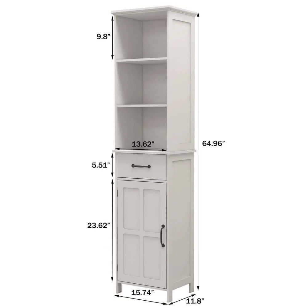 This sideboard stands out with excellent workmanship: the door features superbly carved lines that boost texture, avoids unsightly splicing seams, and ensures the door is sturdier and won’t fall apart. It offers maximum storage too-combining adjustable shelves and closed cabinets, its 3 cabinets are ideal for storing towels, tall bottles, and detergents, while the middle drawer keeps small items like toothpaste and toothbrushes organized.With a slim design, it has a small footprint, making it suitable for narrow empty spaces in bathrooms, living rooms, bedrooms, entrances, or hallways-serving as a great storage solution for any room at home. Crafted from high-quality MDF for long-lasting sturdiness and coated with eco-friendly paint for easy maintenance, it’s a reliable addition to kitchens or bathrooms. Assembly is also easy: all accessories are clearly labeled, and illustrated instructions let you install this slim white cabinet step by step without hassle.