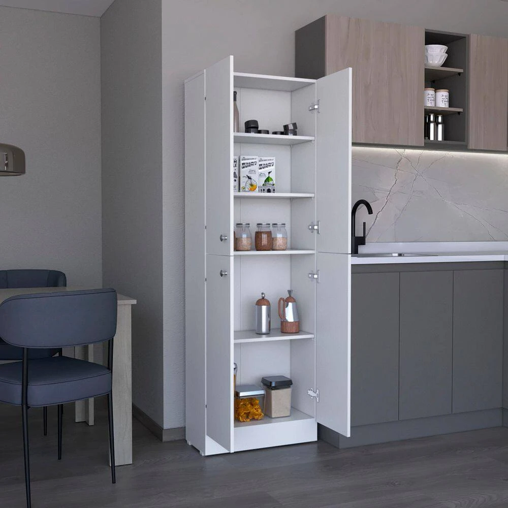 This Kitchen Pantry Storage Cabinet comes with a host of remarkable Product Features. It features Adjustable Shelves, with 3 adjustable shelves and 1 fixed shelf. This setup ensures that regardless of the height of your items, you’ll always have sufficient space to store them. In terms of Size and quality materials, it’s constructed from high – quality laminated particle board. The overall dimensions are 71.1 in. High x 23.6 in. Wide x 11.8 in. Deep, providing a substantial amount of storage space. The cabinet has a Modern Elegant design. It consists of Tw2- Double Door Cabinets, which are perfect for concealing and storing larger items like Pots and Pans. Assembly is a breeze as it offers Easy to Assemble features. With clear instructions guiding you through the assembly of each labeled part, all you require is a screwdriver to lock the cam and bolt assembly system. Moreover, it has MULTIPLE USES. This product can function as a Pantry in your kitchen, a Tool Cabinet in your garage, a Storage Cabinet in your office, or even as a Bathroom Cabinet. It provides various storage solutions and meets your needs with its functionality, helping you achieve a neat and clean space.