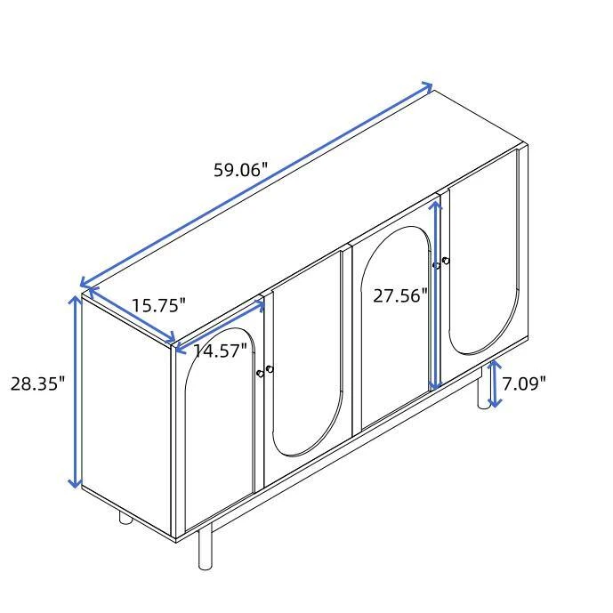 This storage cabinet is crafted from high-quality MDF, pine legs, and solid wood pulls, ensuring a sturdy and durable construction that caters to all your storage needs. Featuring a contemporary and concise style with intaglio designs on its four doors, the cabinet’s minimalist white color scheme seamlessly blends with most home decor. It comes with an adjustable shelf that can be set at three different heights, providing customizable storage solutions for various items. Whether you’re storing clothes, files, tools, or other items, this versatile cabinet is up to the task. With a reasonable load-bearing capacity of 220 lbs on the tabletop and 66 lbs on the cabinet layer board, it’s designed to meet your daily requirements. Please note that during installation, it’s recommended to avoid placing the boards directly on the floor and use Styrofoam for protection. Additionally, due to variations in lighting, monitor displays, and manual measurements, there may be slight differences in color and size.