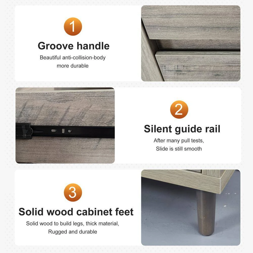 - Safety features: each drawer includes a safety stopper to prevent accidental pull-out, and an anti-rollover restraint kit is provided for secure wall attachment, enhancing safety