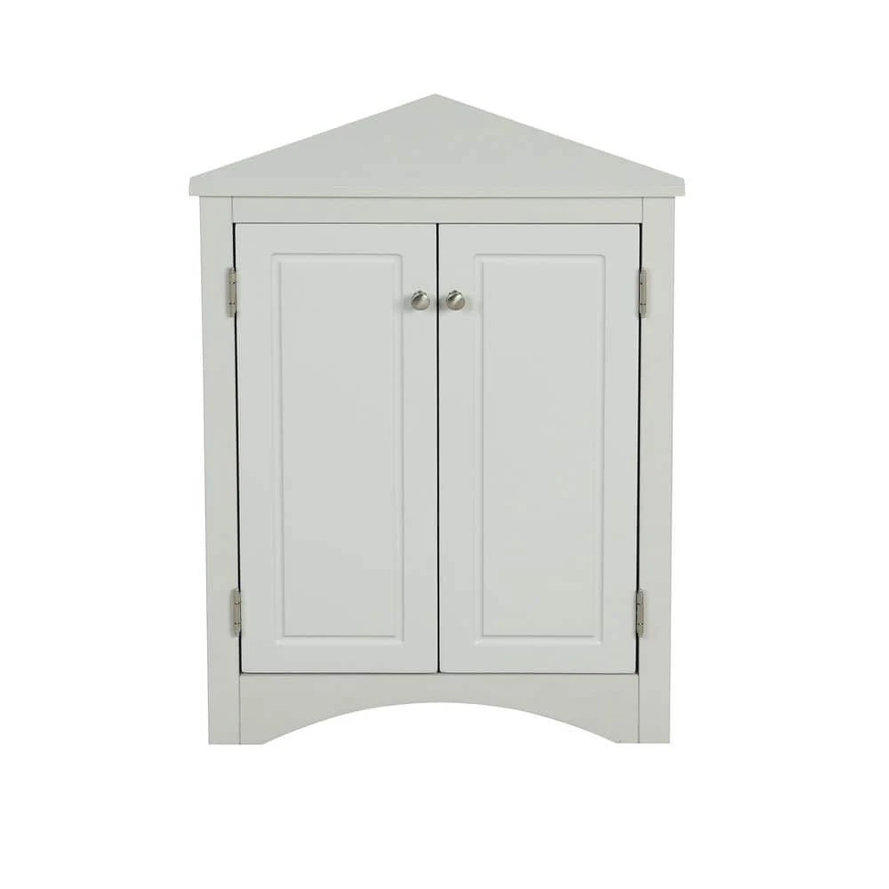 This corner storage cabinet offers affordable functionality and style, featuring a triangular design that maximizes unused corner or wall space while adding an elegant touch to any room. Crafted from high-quality waterproof MDF board (more durable than standard particleboard), it ensures long-lasting stability and easy maintenance, with a sleek finish that stays looking new. The cabinet includes adjustable interior shelves, allowing customizable storage for towels, toiletries, spices, snacks, or shoes in bathrooms, laundries, pantries, or living areas. Its closed storage with doors keeps items dry and clutter-free, while the brushed nickel knobs provide easy access. Available in 3 colors to suit different decor styles, the cabinet supports versatile use in compact spaces. Assembly is straightforward with the included illustrated manual and hardware pack, making it a practical and stylish solution for organizing essentials while enhancing home aesthetics.