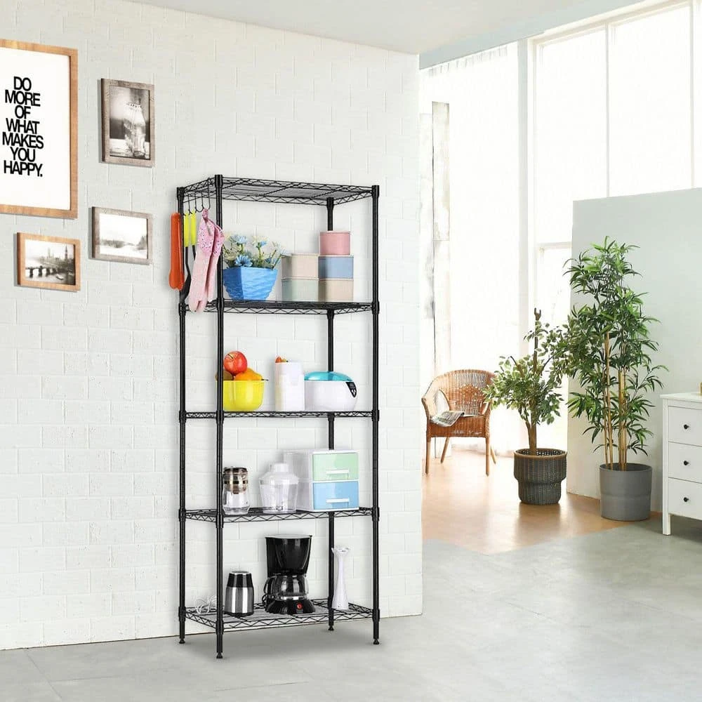 This modular metal storage rack upgrades home organization with its versatility and durability, making it a practical solution for multiple spaces. It has a customizable modular design that adapts to your space and storage needs-whether used as a microwave stand in the kitchen, a multi-tier shelf in the garage, or a stylish unit in the living room, it fits seamlessly.Crafted from high-quality metal with a sleek black finish, it resists corrosion and stands up to daily use, while its space-saving design maximizes vertical space without taking up too much floor area-ideal for small apartments or kitchens. Each shelf offers ample room for organizing kitchen appliances, pantry items, tools, or decorative pieces, adding both functionality and a modern touch.Setting it up and maintaining it is simple too: it comes with clear instructions for easy assembly (needing minimal tools) and is hassle-free to clean, ensuring long-term use with little effort.