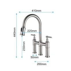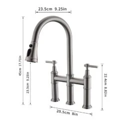 Double Handle Pull Out Sprayer Bridge Kitchen Faucet In Matte Black