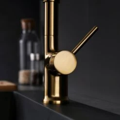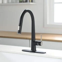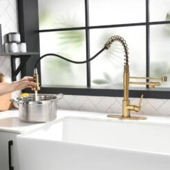 The Single-Handle Pull Down Sprayer Kitchen Faucet With 2 Spout?with Lock, In Matte Black And Gold