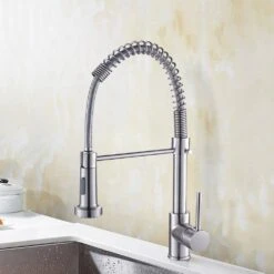 Single Handle Deck Mount Gooseneck Pull Down Sprayer Kitchen Faucet With Deckplate In Brushed Nickel