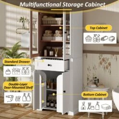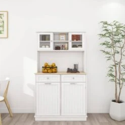 68 In.H Living Room Sideboard: Large Capacity Storage, Multi-Use For Home And Office In White