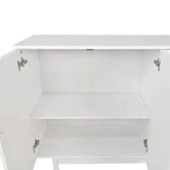 Functional Stylish 4-Door Intaglio Storage Cabinet With Pine Legs, Solid Wood Pulls And MDF In White