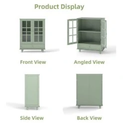 MDF Painted Cabinet With Glass Doors And Drawer, Open Storage Space,Bedroom, Living Room In Green