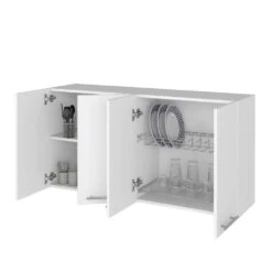 MDF Painted Cabinet With Glass Doors And Drawer, Open Storage Space, Bedroom, Living Room In Black