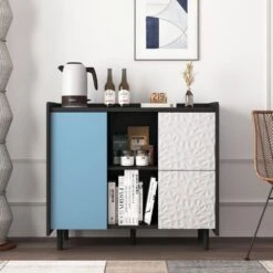 Modern Black Storage Sideboard: 2 Drawers, 2 Open Compartments, Ideal For Kitchen Coffee Stations