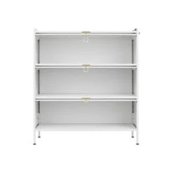 Modern 3-tier Glass Door Cabinet With Featuring 4-tier Storage, For Entryway Living Room, Black