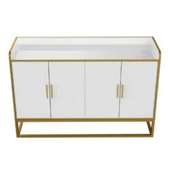 Modern Kitchen Buffet Storage Cabinet Cupboard White Gloss With Metal Legs For Living Room Kitchen
