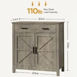 Modern Farmhouse Buffet Cabinet: 2-Drawers, Glass Doors, Wine Rack-Light Blue/Oak, 56.46 In. W