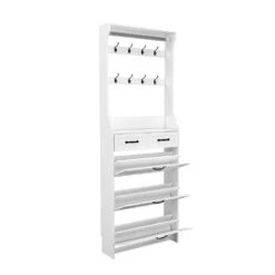 Rattan, Allen 2 Door 1 Drawer Cabinet, Shoe Rack, Double Layer, Suitable For Entrance In Black