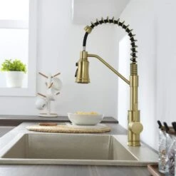 18.7 In.H Single Handle Pull Out Sprayer Kitchen Faucet In Brushed Gold With 360° Spout Swivel