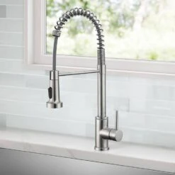 19 In 360° Spout Swivel Spring Kitchen Sink Faucet With 3 Modes Pull Down Sprayer In Brushed Nickel