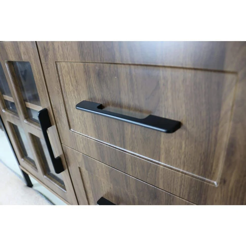 This Multifunctional Storage Buffet Cabinet, crafted from high quality MDF wood board with a spraying coated dark brown finish, offers a blend of style and functionality. The cabinet features 2 visual tempered clear glass panels, which not only keep your items dust free but also make them easy to identify and access. Its design, incorporating retro aesthetics in both form and color, enhances the artistic ambiance of your home. Safety and stability are ensured as it comes equipped with an anti tip device to prevent it from falling down. Additionally, you have the flexibility to customize your storage space by removing or adjusting the movable partition. With 2 layers of open shelves both above and below, 2 closed cabinets, 2 enclosed drawers, and an ample desktop, this buffet cabinet provides you with a large storage capacity. It helps keep your kitchen, dining room, living room, and other areas organized and tidy, making it an excellent piece of furniture that combines beauty and practicality.
