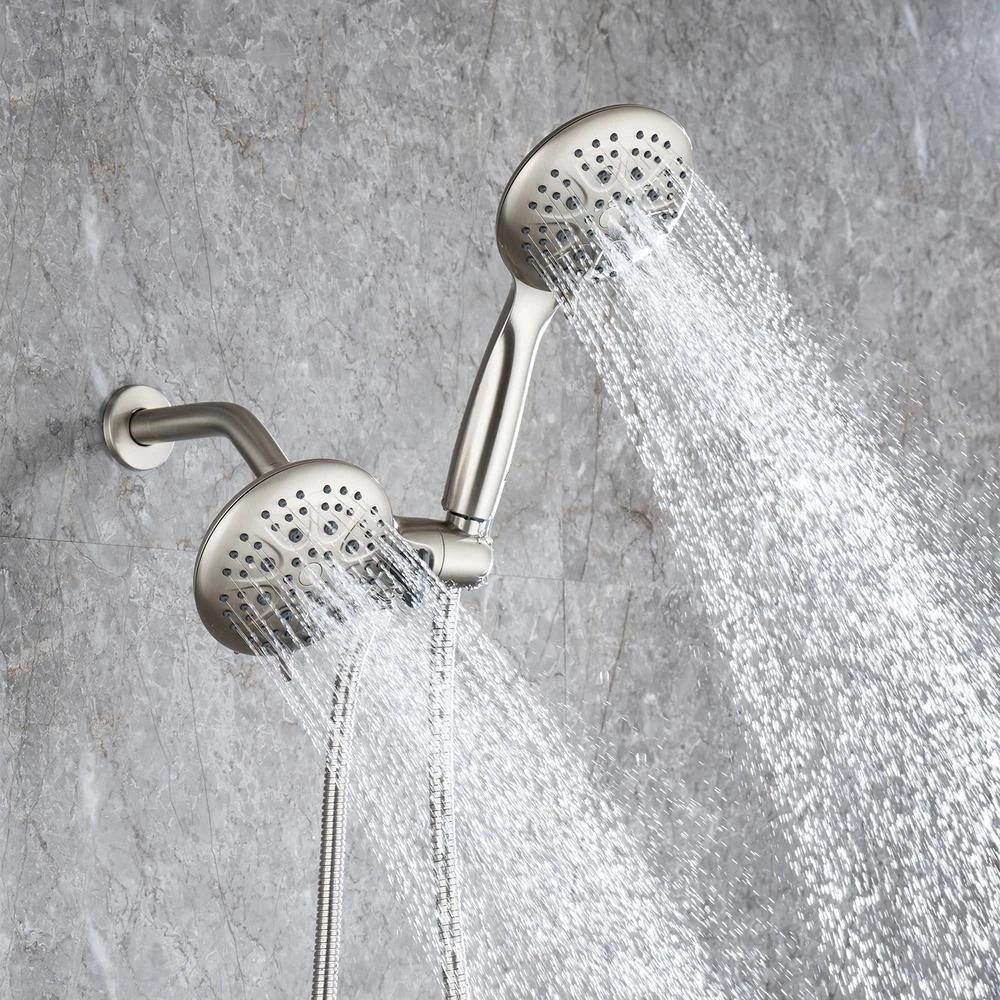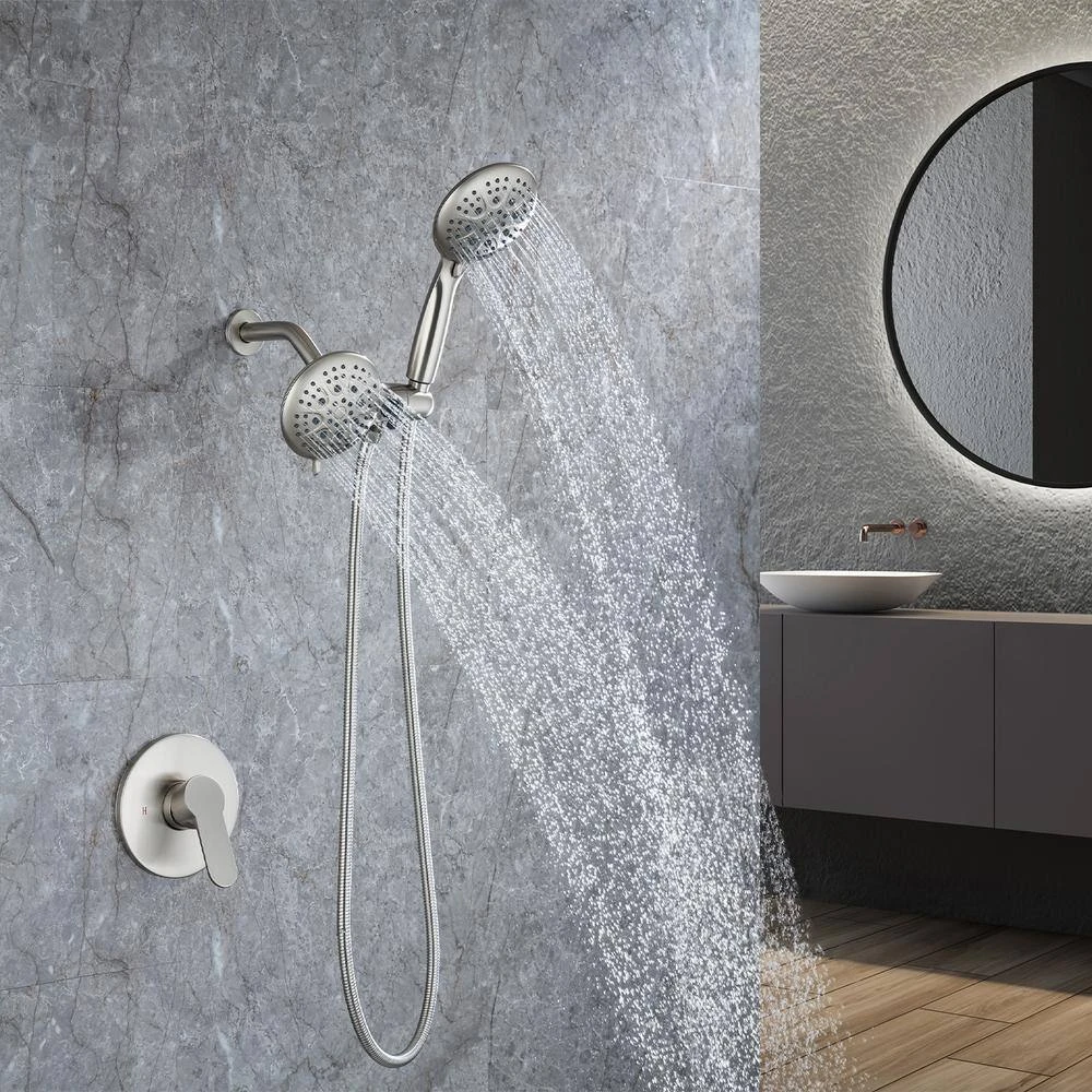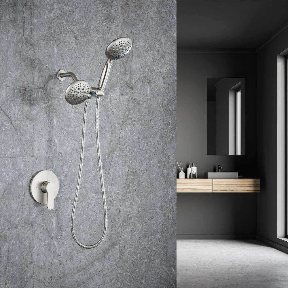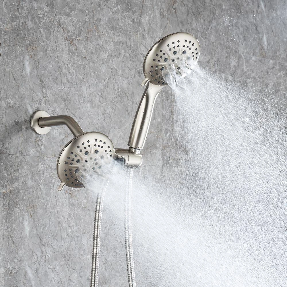 Stainless steel shower kit with 2-in-1 dual spray head with shower hose. The combination of the flexible diverter and stainless steel hose is perfect for any bathroom situation. Multiple spray modes allow you to enjoy the comfort of your bath.
