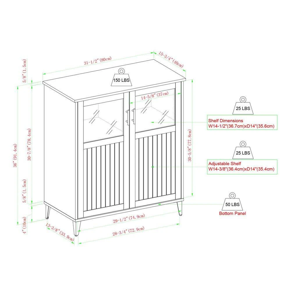 Our product comes with an array of remarkable Product Features. It showcases a Modern, grooved, glass – door design that adds a touch of elegance and contemporary style to any space. The 2 adjustable shelves provide customizable storage, allowing you to adapt the interior layout according to your specific needs, whether it’s for storing books, dishes, or decorative items.Constructed with warp – resistant MDF, long – wearing laminate, and powder – coated steel, it ensures durability and sturdiness. The 2 soft – close doors offer a convenient and quiet way to access and close the storage area, keeping your items neatly hidden away. The adjustable metal feet enable you to display the unit exactly as you like, providing stability on various surfaces and the flexibility to level it if needed.Safety is a priority, as the glass doors and 1 glass shelf are made with tempered safety glass. This product is highly versatile, as it can be used as linen storage, an accent piece to enhance the aesthetic of a room, or even as a bar cabinet. However, it’s important to note that Assembly is required, but the end result is well worth the effort, offering a stylish and functional addition to your home.