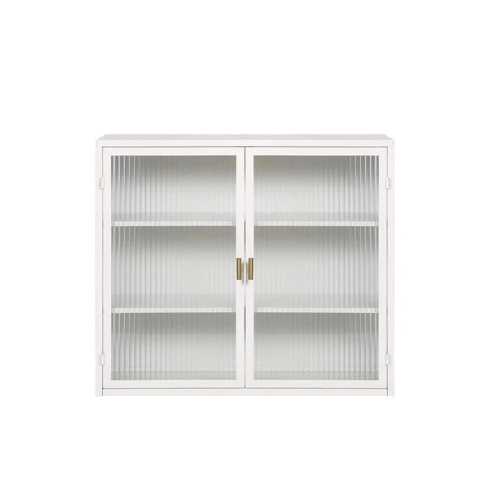 This sideboard features a contemporary and concise style, blending elements of modern home design with simple lines and minimalist shapes to suit your personal taste and interior decor. Crafted from iron and tempered glass with meticulous craftsmanship, it boasts a sturdy construction that ensures exceptional strength and stability, effortlessly resisting rust, erosion, and wear. The cabinet’s fluted glass design provides superb light transmission while maintaining privacy. It offers versatile storage solutions with a three-tier, two-door cabinet that can be wall-mounted or placed on the ground, maximizing space utilization and room layout. The shelves inside can be detached to accommodate various-sized items, and the cabinet can support up to 5kg/11lbs per tier. Easy to assemble with all hardware and detailed instructions provided, this sideboard is an optimal addition to high-grade home decoration.