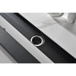 Linear Shower Drain With Removable Quadrato Pattern Grate, Included Hair Strainer And Leveling Feet