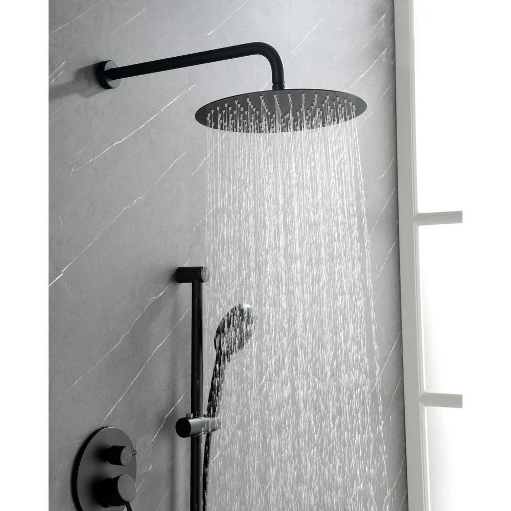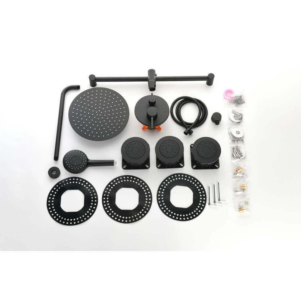 - Comprehensive package: includes shower head, hand shower, slide bar, shower arm, hose, valve trim, wall supply, body spray and rough-in