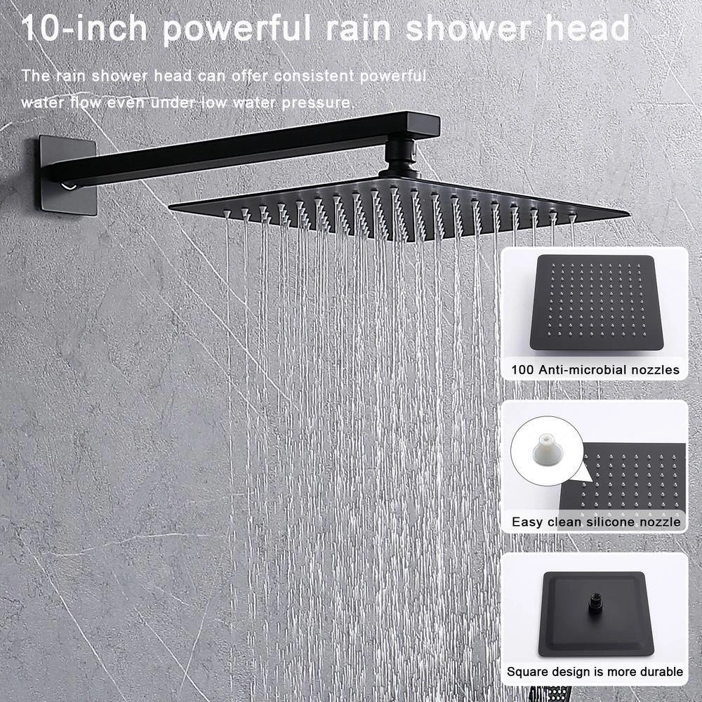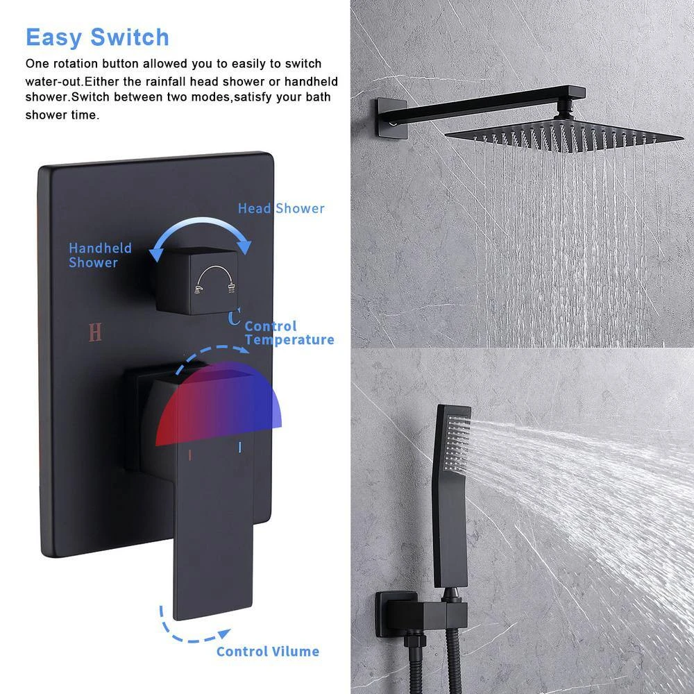 - Includes: l style brass handheld shower head,10 in. 304 stainless steel rain shower head and solid brass shower mixer valve