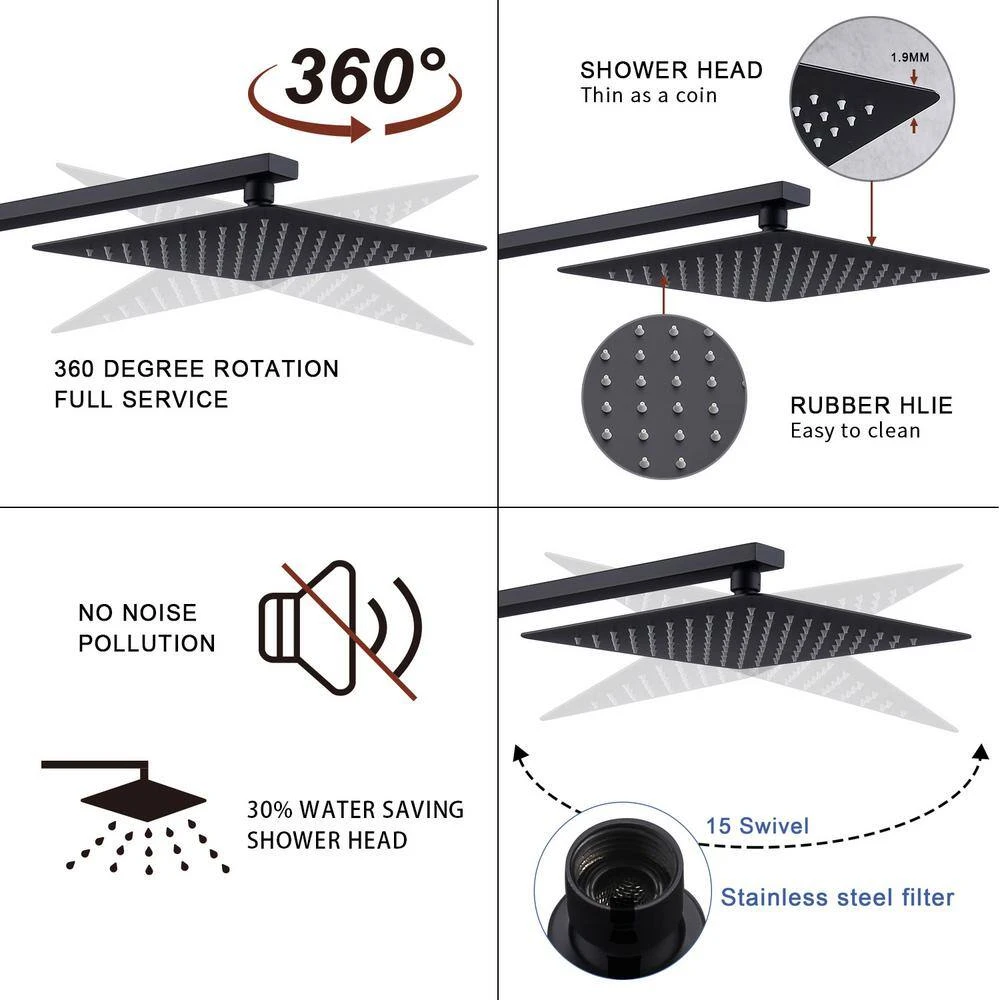 Taking a shower can be a way to relax yourself or as an enjoyment in daily life. The stunning showerheads are meticulously crafted with brass and stainless steel for durability and reliability. The showerhead positioned above you simulates the feeling of a rainfall cascading down to you that you will feel every drop of water trickle on you calmly and make you more relaxed when you take a shower. The 12 in. square shower head is large enough to cover your whole body. Two shower modes you can choose freely, just simply switch the direction of the knob above the single handle. Relax your whole body with this rain shower system.