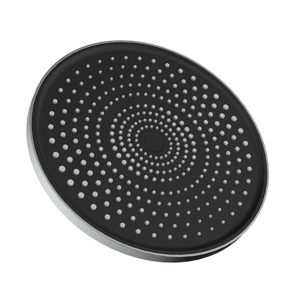 - Shower head features an ultra-thin design with an oversized 10 in. panel for a larger water delivery area
