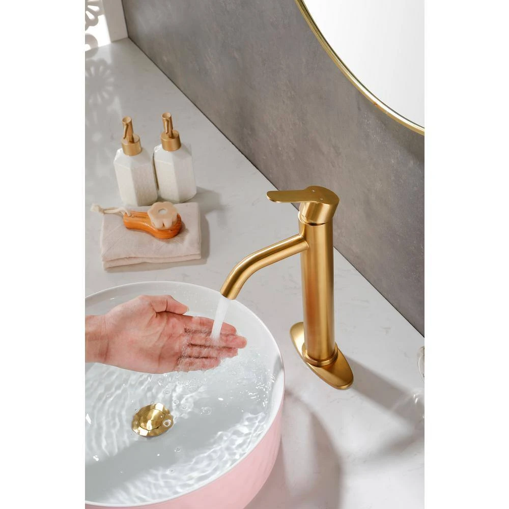 The modern single-hole bathroom sink faucet features a sleek and elegant design, enhancing contemporary bathroom styles with clean lines and practical styling. It is easy to install with U.S. standard fittings and professional instructions, allowing for a quick 30-minute setup. The single-handle design offers effortless control of water flow and temperature, while also being easy to clean and space-efficient. For any installation questions, customer support is readily available.