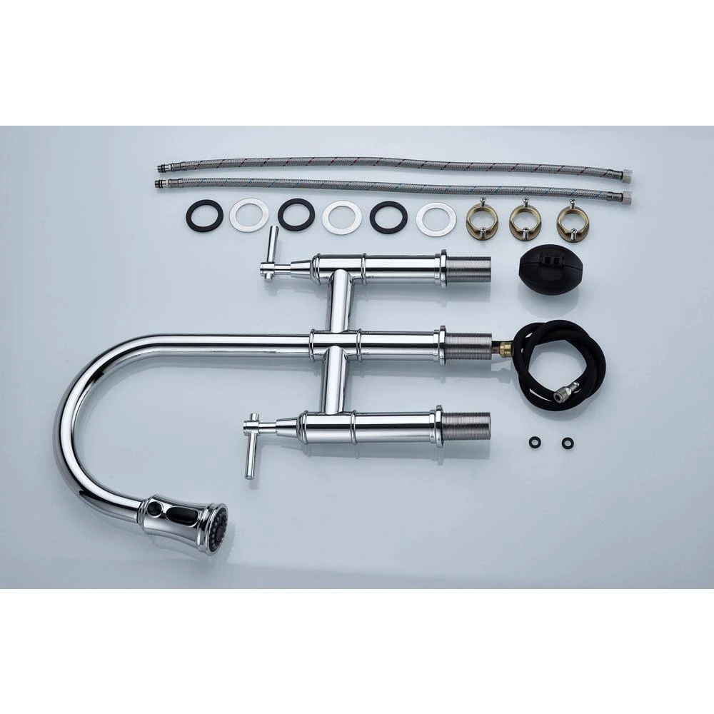 This faucet features a dual handle switch for easy and precise control of water flow and temperature. Its 360-° rotating high-arc nozzle increases the cleaning area and provides ample sink space. Made of high-quality materials, the faucet ensures durability and reliability. Additionally, a quality aerator provides a quiet, splash-free water flow.