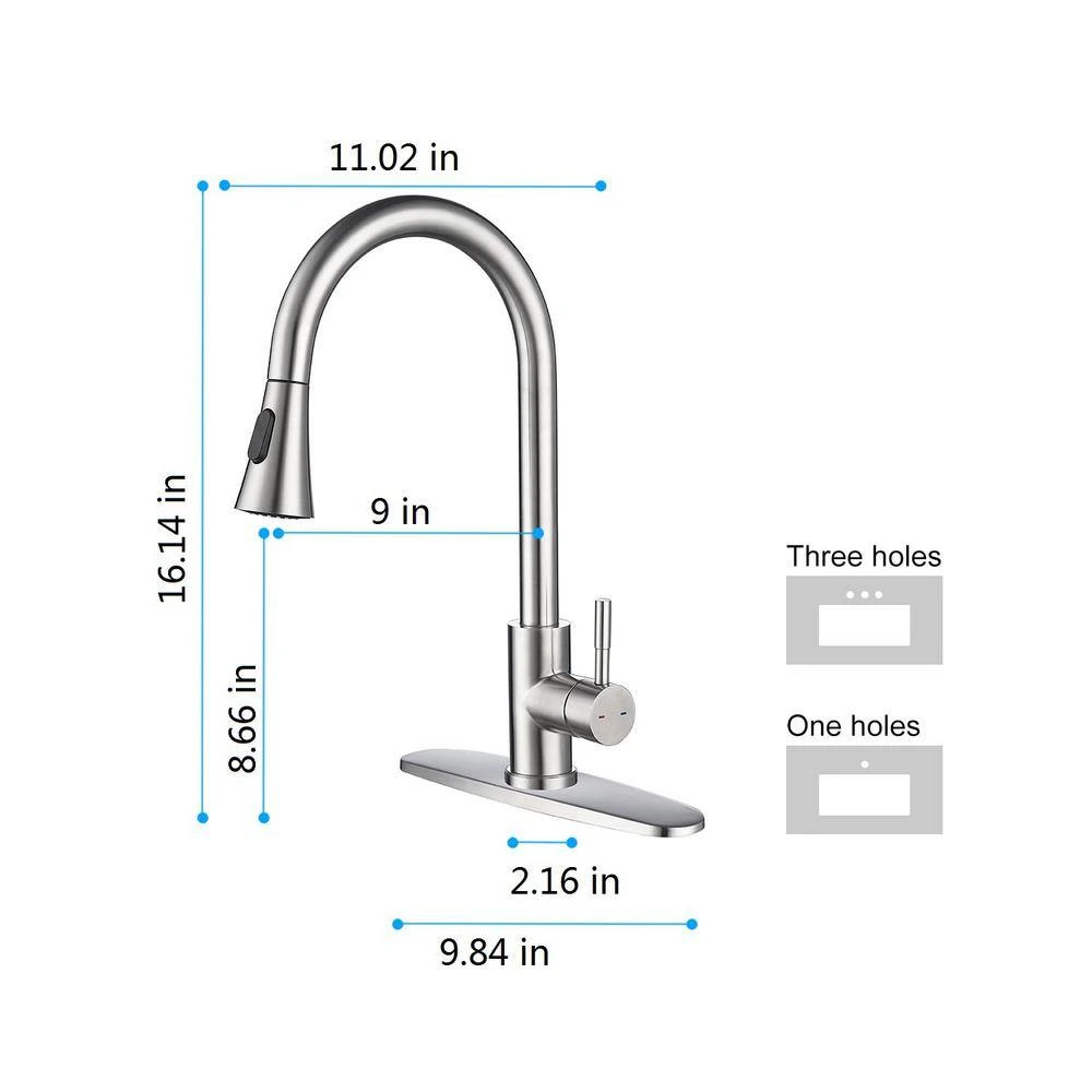 This kitchen faucet design keeps your kitchen space simple and fresh, easy to match with most sinks. The single handle can easily control the water temperature and flow, the high-arc 360° rotating nozzle provides a full range of cleaning channels, and the nozzle always retracts into the nozzle after each use. Excellent corrosion resistance and anti-rust treatment to prevent dirt from adhering to the surface of the faucet.