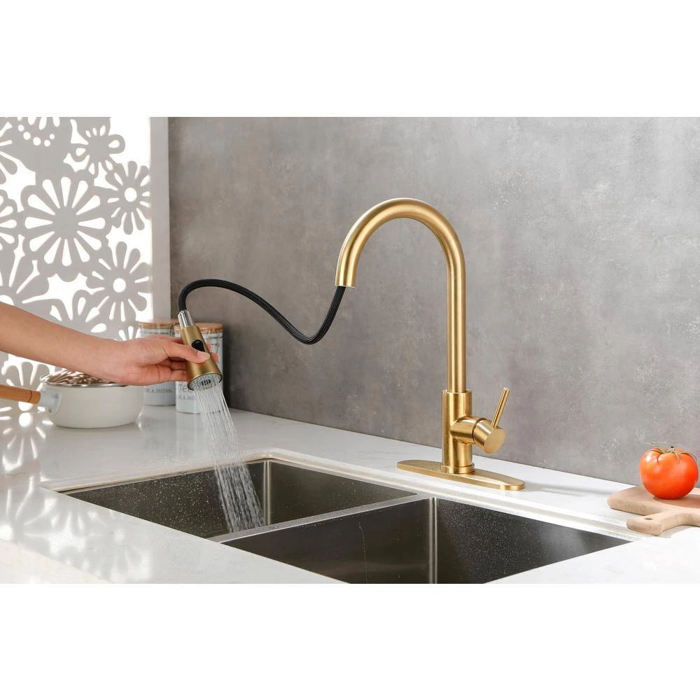 The pull-out spray head is expertly designed to be versatile, fitting seamlessly into a variety of sinks, while the high-arc nozzle rotates a full 360°, providing exceptional ease and convenience for all your water needs. Its surface boasts high-quality anti-corrosion and anti-rust treatments, effectively preventing dirt and grime from adhering and ensuring the faucet maintains its pristine appearance. With a single handle, you can effortlessly control both the water temperature and flow rate, making adjustments quick and simple. For everyday maintenance, a simple wipe with a rag is all that’s needed to keep the faucet looking and performing like new.