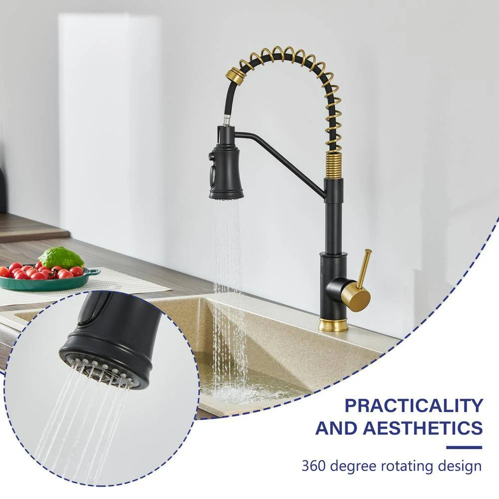 - Industrial Aesthetic: The faucet features a high-arc open coil spout, delivering a modern, industrial look that enhances kitchen decor.