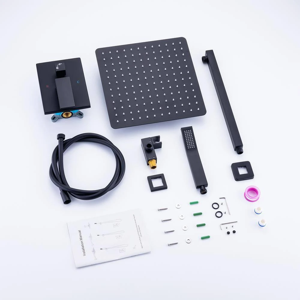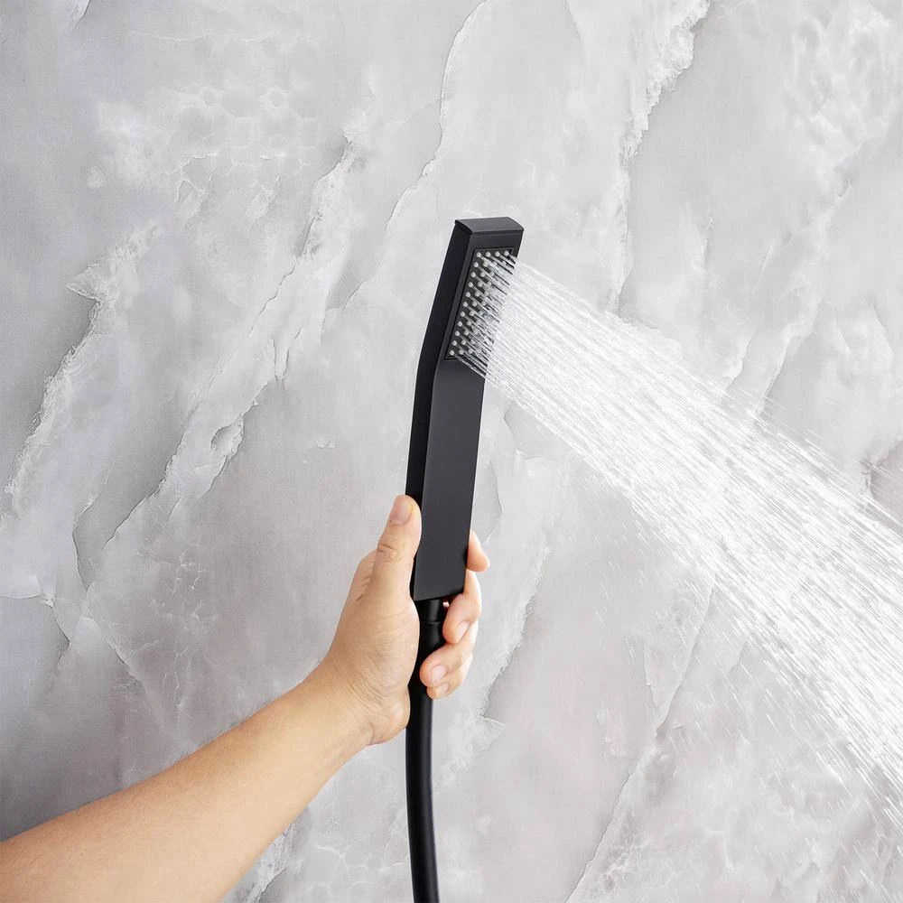 This 1.8GPM Max Flow Shower Set features a matte black finish, premium stainless steel SUS304 shower head and solid brass pressure balanced shower mixer valve construction for durability. Using innovative jet technology, the water pressure is increased to 100%, simulating natural rainwater, providing you with the experience of natural contact with water. Handheld shower head 1.5M shower hose for easy flushing to every place.