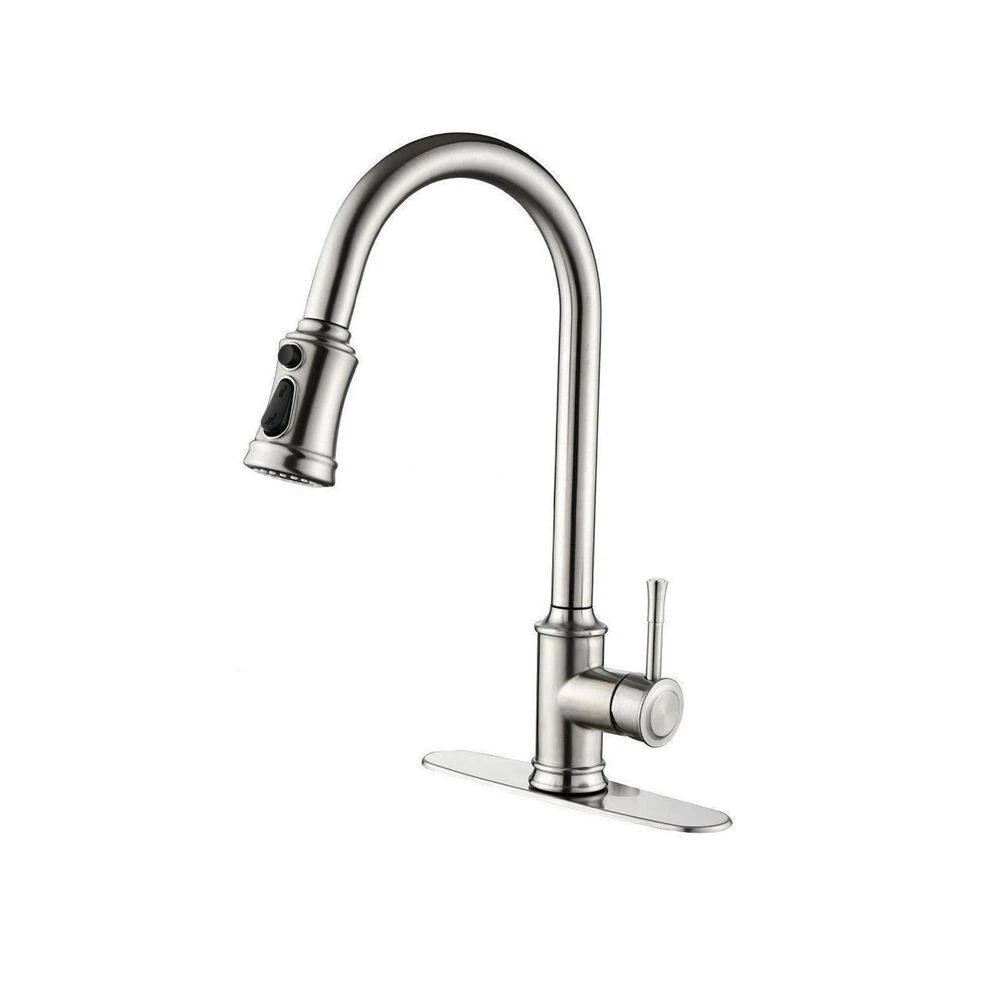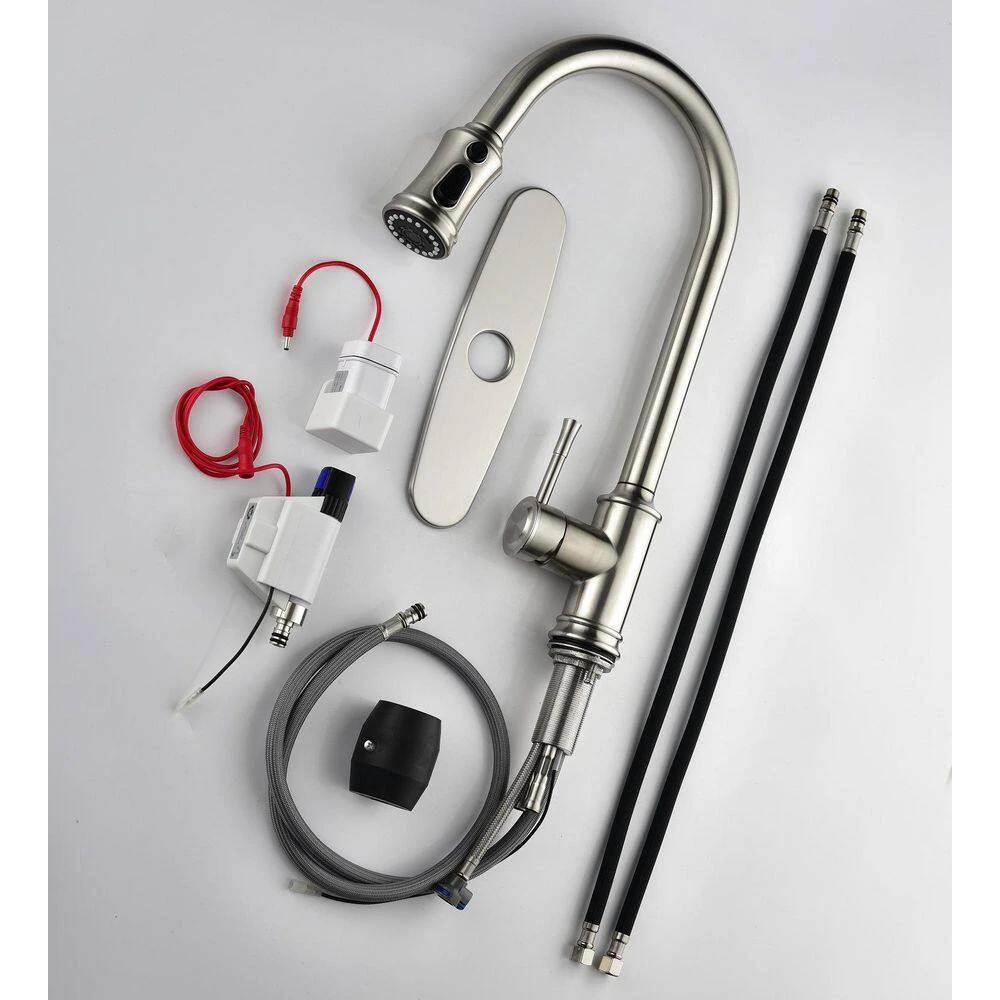 Unlike traditional kitchen faucets. No more getting your hands dirty with the single lever handle, you can start and stop water flow by simply touching anywhere on the gooseneck of the kitchen faucet with your hand or forearm. Our kitchen sink faucets are made of stainless steel for excellent corrosion resistance, with a rust-resistant brushed nickel finish that won’t stain. 20