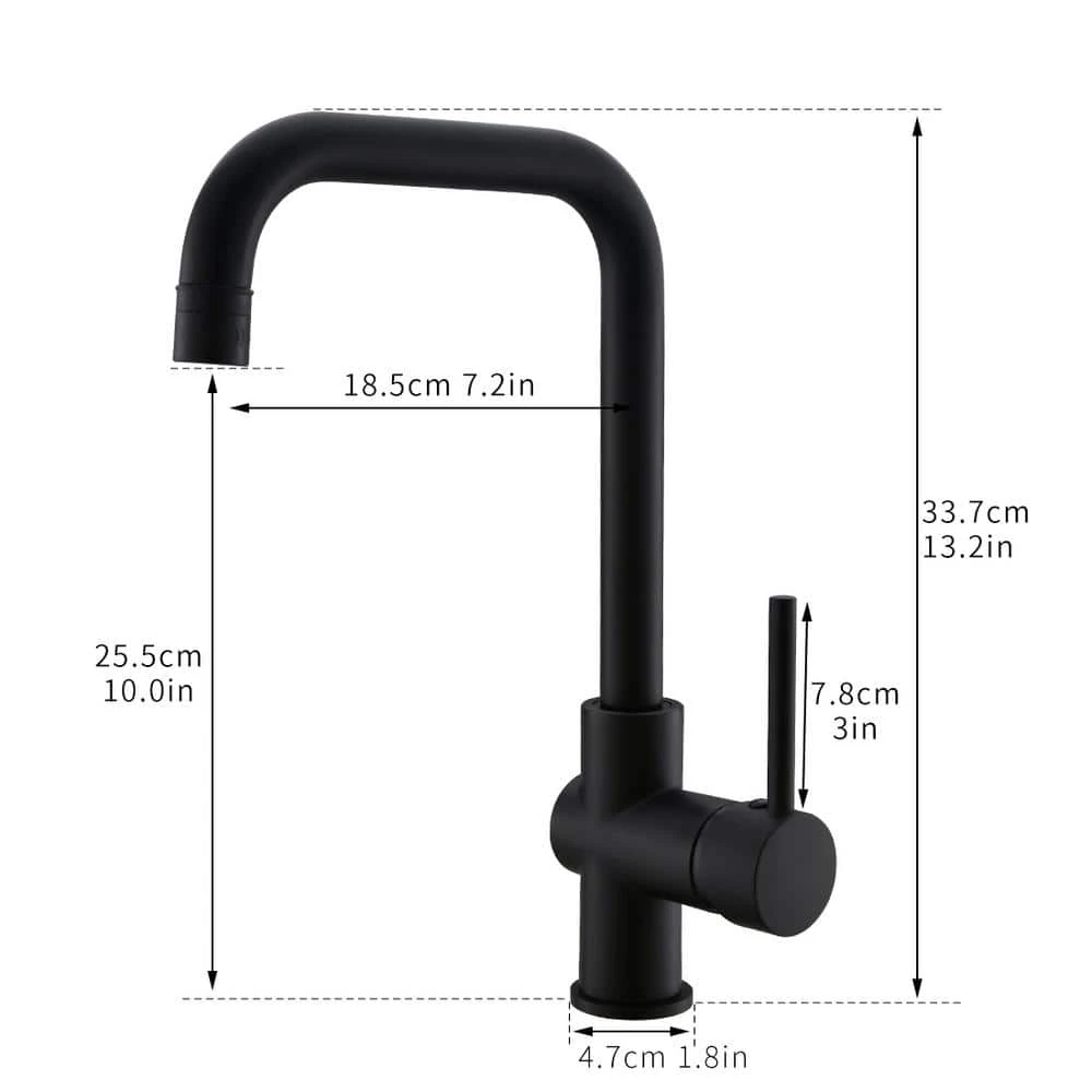 This kitchen sink faucet is a versatile and durable solution for a wide range of applications. Featuring a sleek brushed nickel finish on a matte black body, this single-handle faucet combines style with functionality. Designed as a commercial bar tap suitable for both hot and cold water, it boasts a superior corrosion and rust-resistant finish that ensures longevity and minimal maintenance. The faucet’s gooseneck design provides ample clearance for filling tall containers or washing bulky items, while its 360° swivel spout enhances flexibility and convenience for various tasks. It is designed for easy installation as a single-hole deck-mounted sink faucet, complete with a 60 cm water hose, mounting accessories, and an instruction manual, making setup straightforward and hassle-free. Widely used in kitchens, bathrooms, bars, restaurants, laundry rooms, outdoor lawns, boats, campers, and more, this faucet is carefully designed and innovated to meet diverse needs. Whether you’re washing dishes, filling up basins, or adding water to tall containers, this faucet offers the flexibility and performance required for efficient daily use in any setting.
