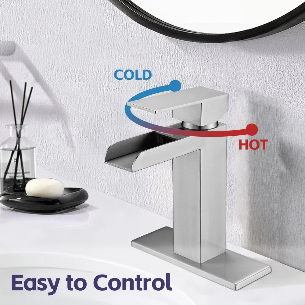 This single-handle faucet is the epitome of style and versatility, featuring a sleek, modern design that enhances any bathroom setting, from lavatories and restrooms to vanities, RVs, and bars. The single-handle design allows for precise control over both water flow and temperature, making it not only stylish but also highly functional. Constructed with premium materials, this waterfall faucet is lead-free, BPA-free, and corrosion-resistant, ensuring exceptional durability and long-lasting performance, even with frequent use. The faucet also includes a metal pop-up drain with a built-in strainer that effectively filters debris to prevent clogs, adding convenience to your daily routine. Installation is incredibly easy, with the faucet adjustable to create a powerful waterfall effect. The pop-up drain with overflow and the faucet’s compact design make it simple to install and maintain, allowing for self-installation using basic hardware without the need for professional assistance.