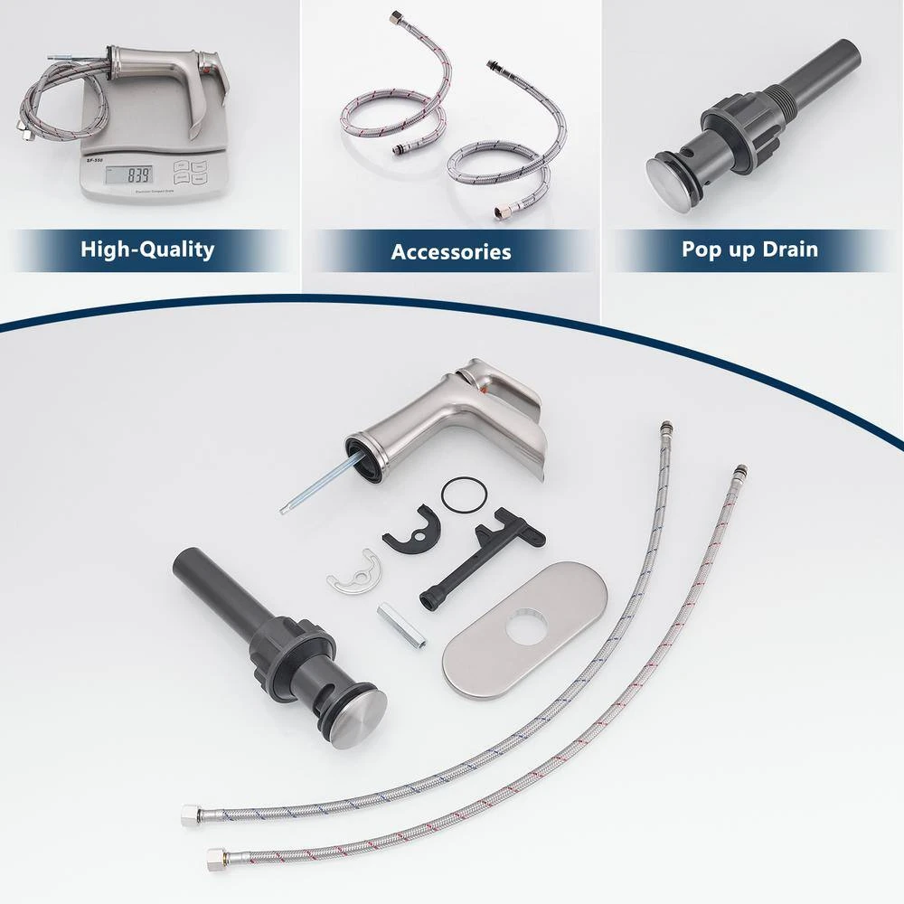 The sink faucet with deck plate features a modern design, incorporating an ultra-wide tall waterfall spout for a large water flow and a brushed nickel finish that resists corrosion and tarnishing while being highly reflective. It boasts a single handle for easy control of flow and temperature. Installation is convenient, as the single-hole faucet can be easily adjusted to create a powerful waterfall effect. The overflow pop-up drain hole simplifies installation and cleaning, and the short design allows for self-installation using standard hardware, making it a practical addition to any bathroom.